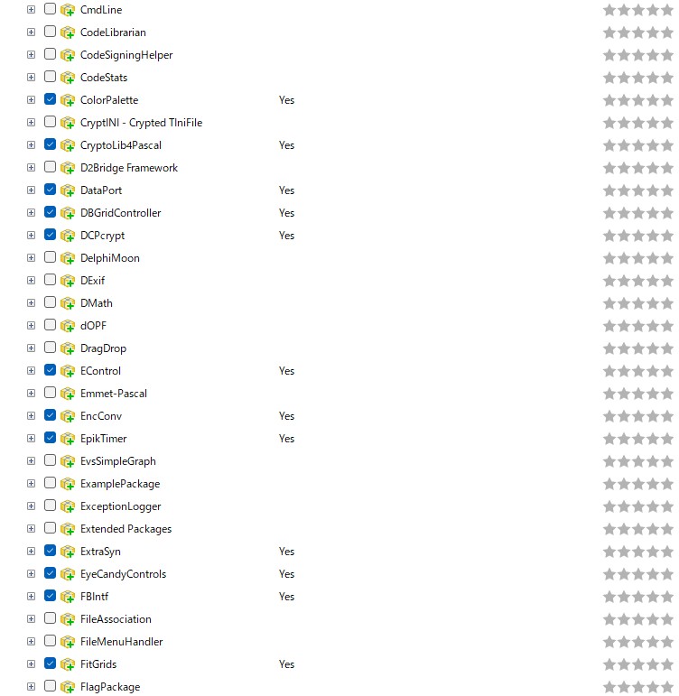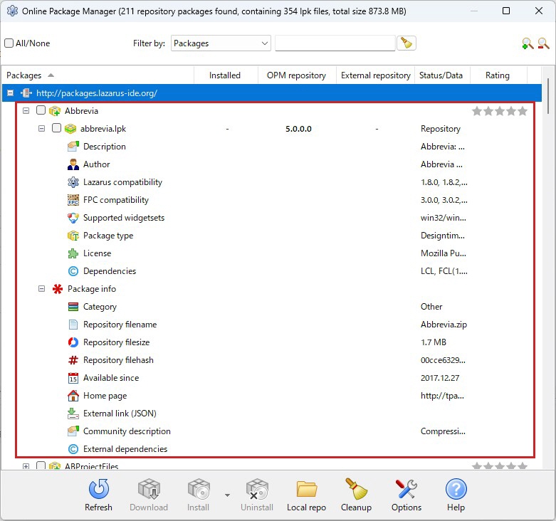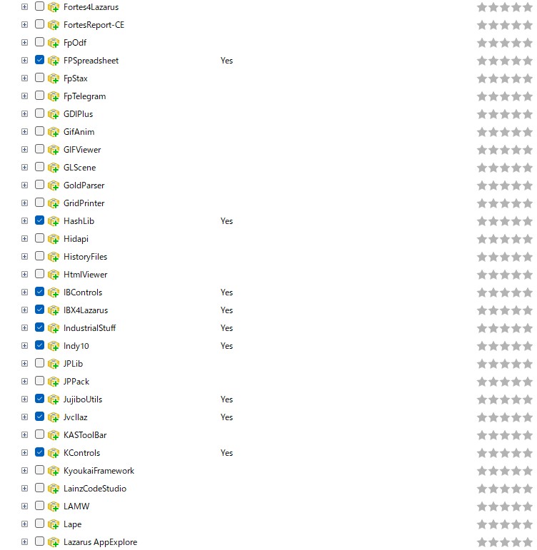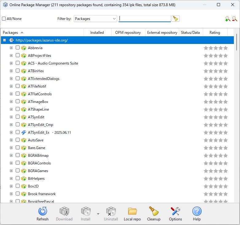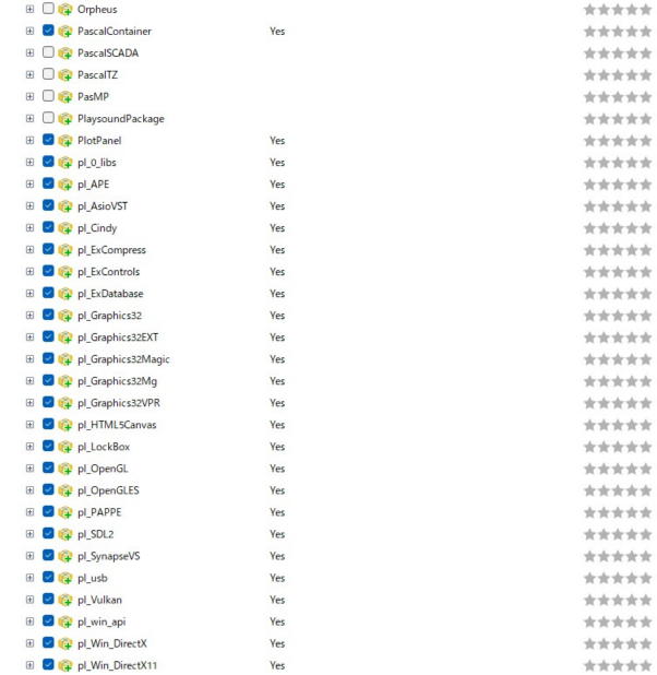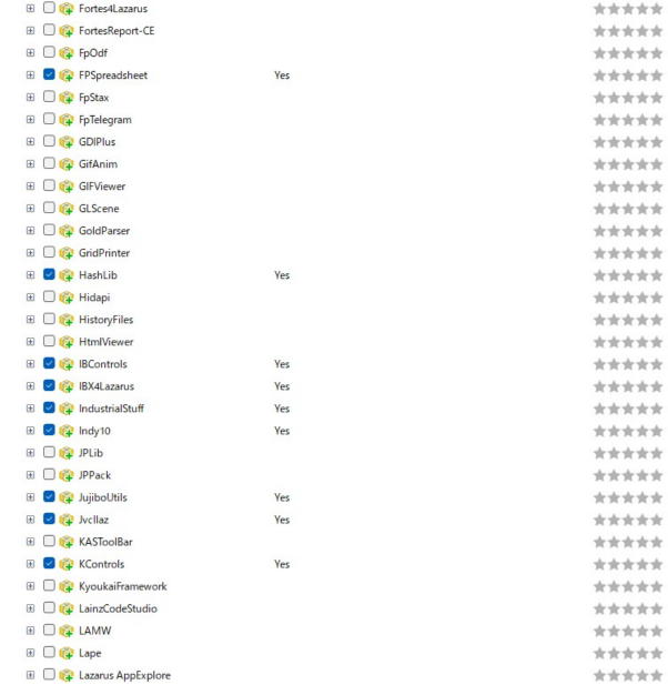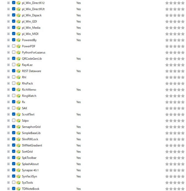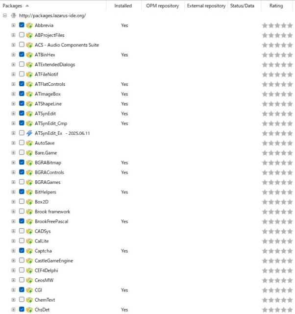 以下の表は、オンラインでインストール可能パッケージの一覧です(Lazarus 4.0.0 2025年6月の例)。