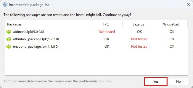 ただし、うまくマインストールできないものや、Lazarus IDE の挙動が変ってしまうものもあるので注意して下さい。
