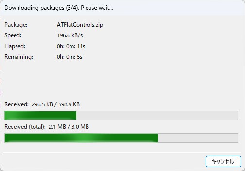 チェックしたパッケージがダウンロードを開始しますが、依存関係で必要なパッケージがある場合、それらのインストール確認のメッセージが出ます。